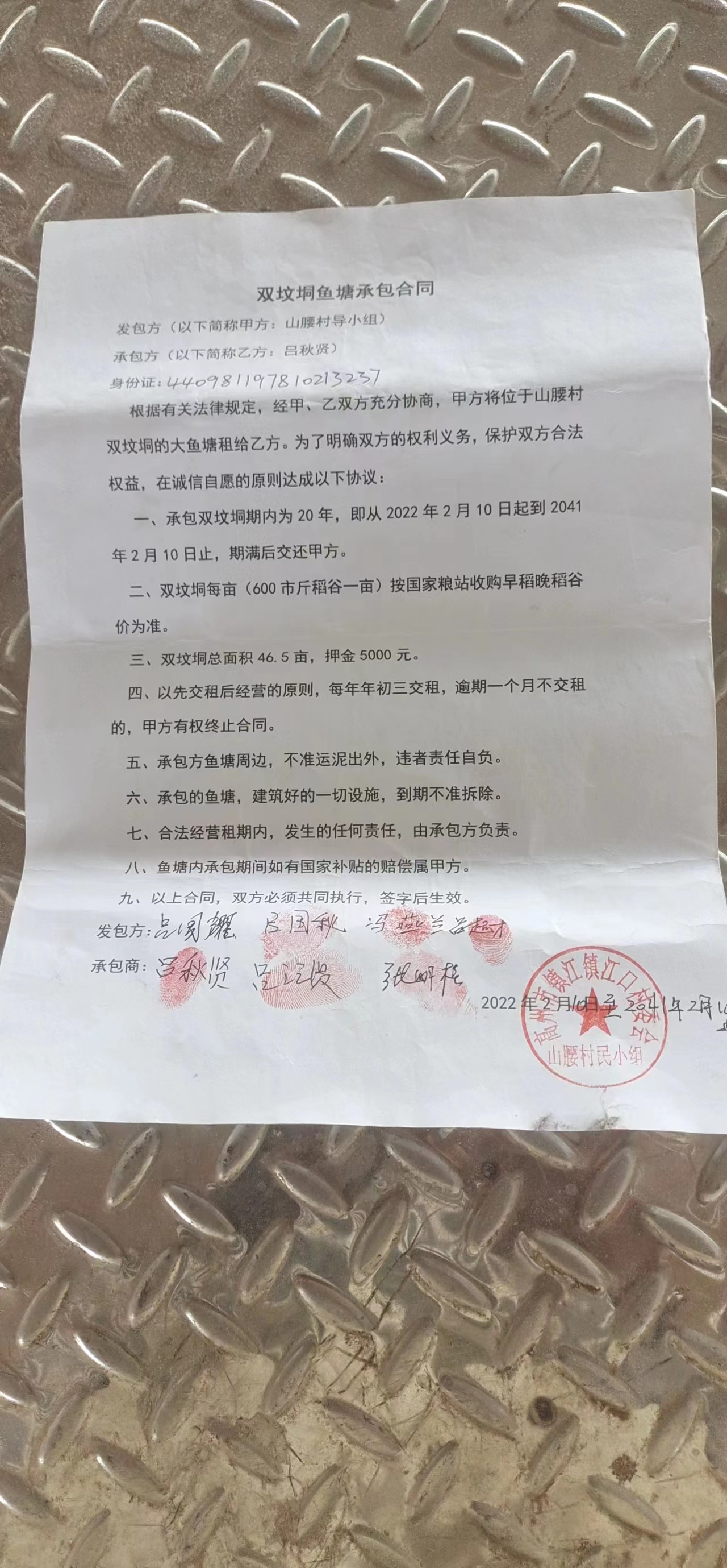 双坟炯鱼塘承包合同发包方(以下...