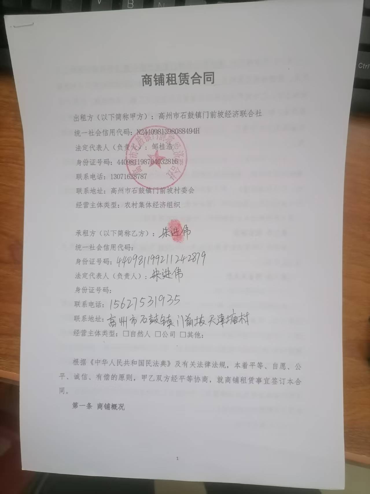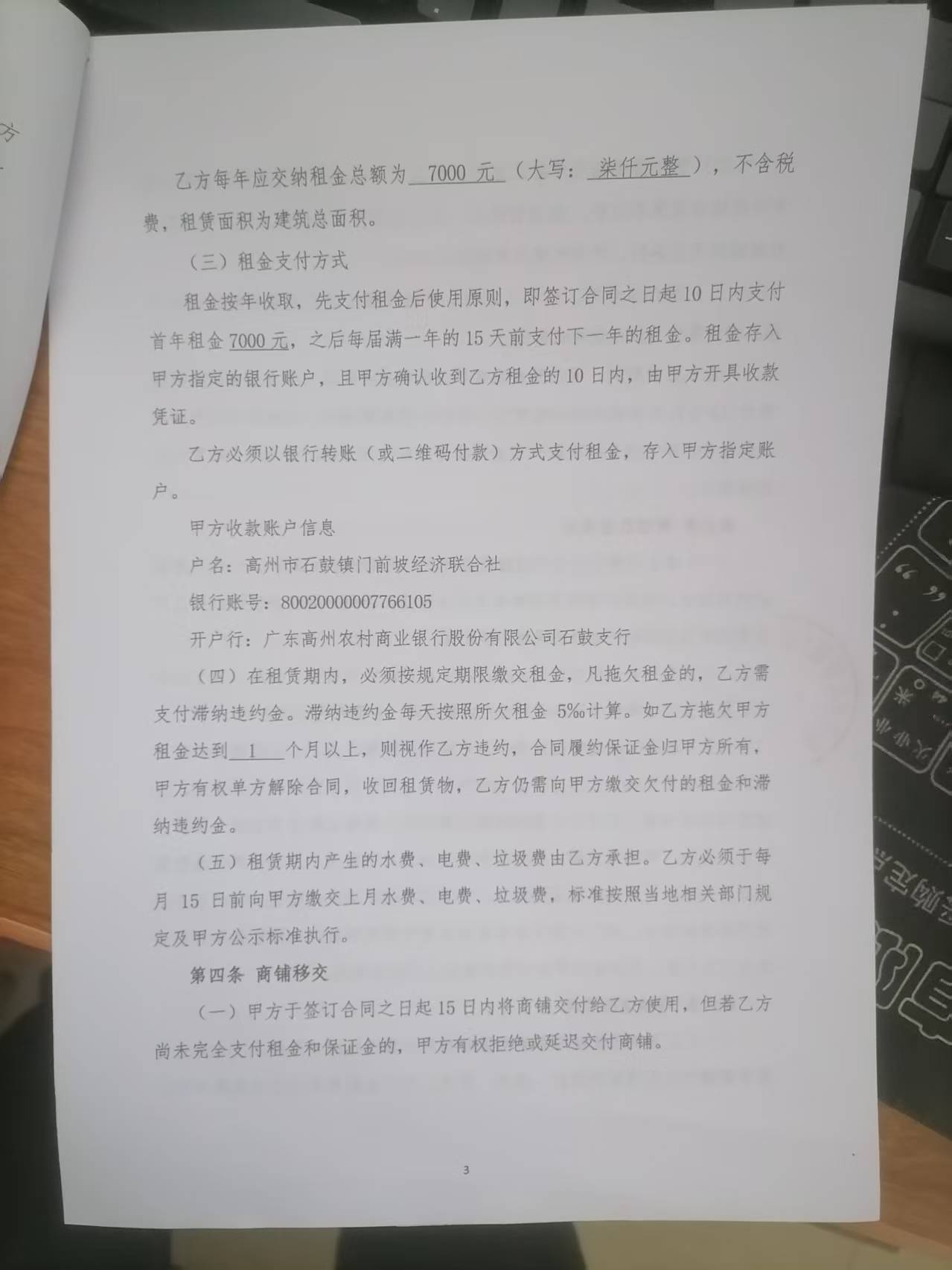 高州市石鼓镇门前坡经济联合社3号商铺
