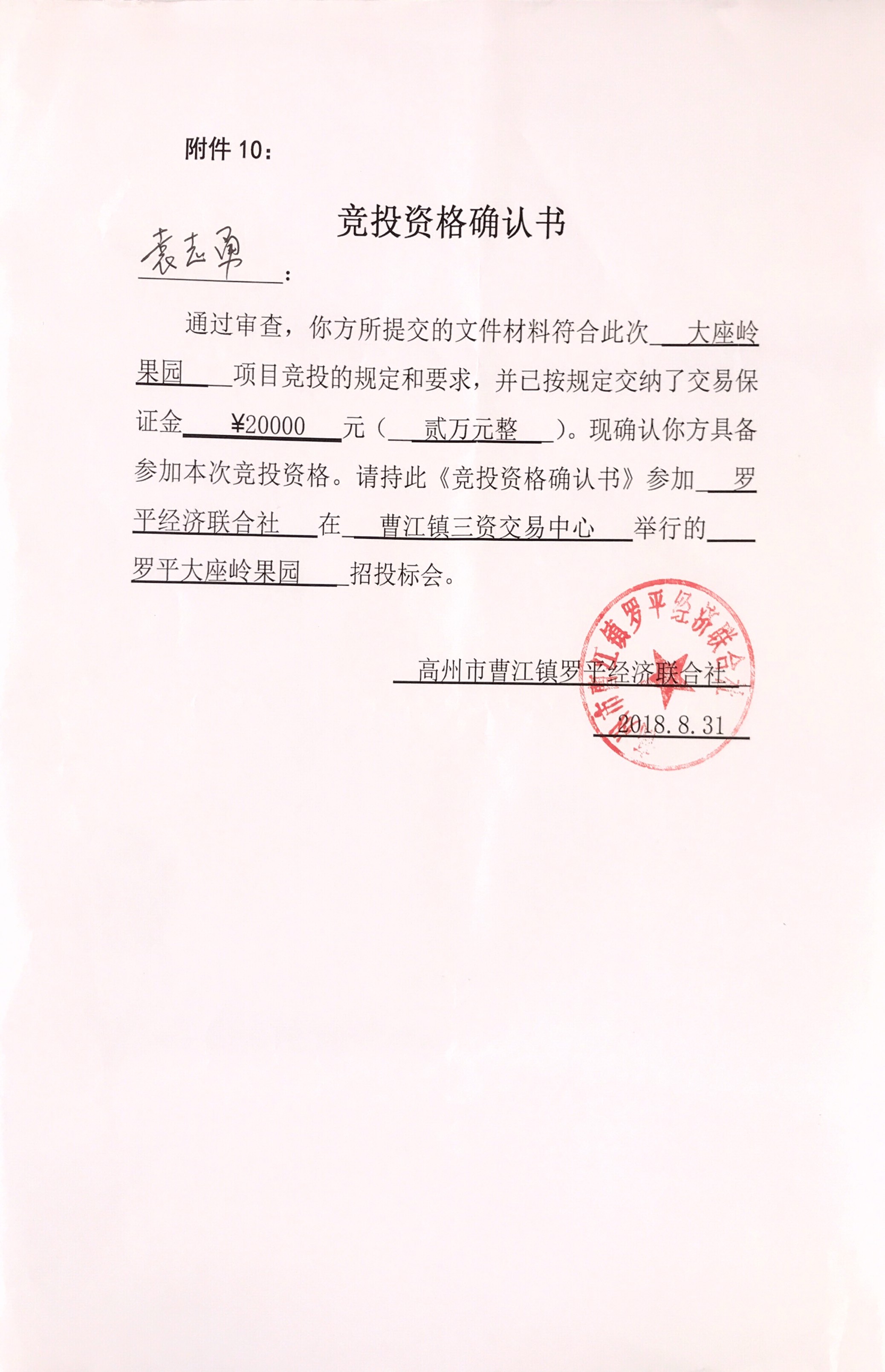• 处置说明:村委会向镇农业办递交村集体资产罗平村大座岭公开招投标交易申请。